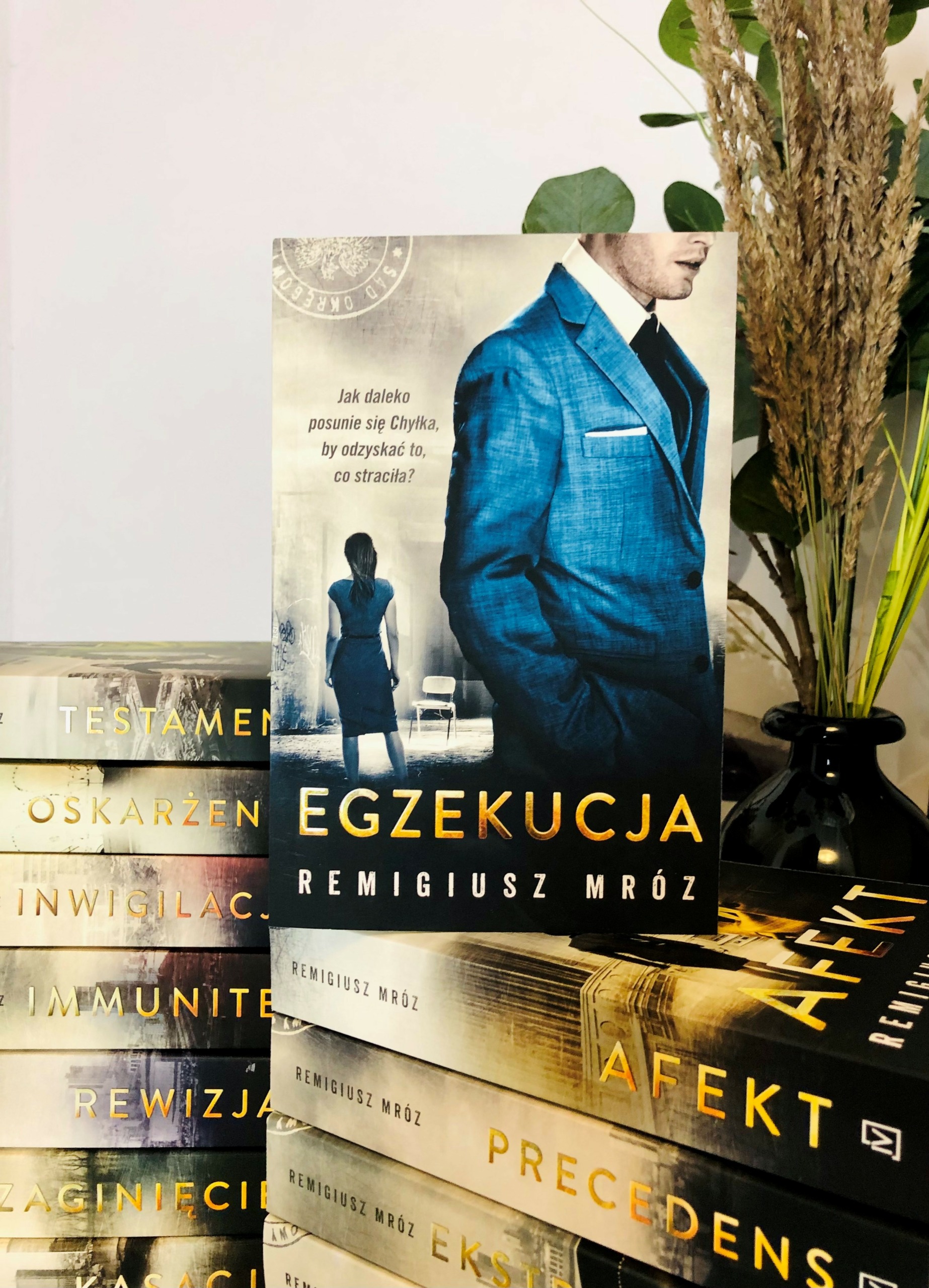 wiem, czego mam się spodziewać, otwierając kolejną jego powieść.  Seria z Joanną Chyłką jest dla mnie szczególnie ważna i wyjątkowa. To od niej zaczęła się moja przygoda z Mrozem. Gdy sięgałam po "Kasację", wydanych było sześć tomów, na pewno nie spodziewałam się wtedy, że czternasty będzie mnie fascynował tak samo jak pierwszy. A może i nawet bardziej. Wszak teraz to już nie tylko zadrukowane strony, to historia, która ożyła w mojej głowie i sercu. Mam to szczęście, że warszawskim prawnikom nie oparli się też moi znajomi i często w rozmowach na zupełnie inne tematy pojawiają się nawiązania czy wręcz cytaty. Dzięki serialowi grono odbiorców zwiększyło się o kolejne osoby, a bohaterowie zyskali "realne" twarze. Przyznam, że początkowo kręciłam nosem na widok obsady, ale po czterech sezonach jestem pod ogromnym wrażeniem kreacji aktorskich.  Nie sposób napisać recenzji "Egzekucji" bez uniknięcia spojlerów. Z drugiej strony nie sądzę, by czytał ją ktoś, kto nie zna tej serii. Postaram się jednak nie wchodzić w treść i skupić się na moich odczuciach, choć one też mogą być mocno sugestywne.  Przede wszystkim nie jest to tom prawniczy. Wielokrotnie wszystko kręciło się wokół procesu i sądowej batalii, tym razem jednak na pierwszym miejscu jest życie prywatne głównych bohaterów. Byłam zaskoczona tym, że Mróz tak poprowadził fabułę i nie mam tu na myśli wydarzeń, a emocje nim towarzyszące. Nie spodziewałam się, że czytanie Chyłki doprowadzi mnie do łez i że to właśnie w niej odnajdę najpiękniejszy cytat o miłości. Nie sądziłam, że będą mną targały tak sprzeczne uczucia, że będą się zmieniać z każdą kolejną stroną. Uwielbiam główną bohaterkę od pierwszego tomu i choć ciągle ewoluuje, to autorowi niezmiennie udaje się zachować jej najważniejsze cechy, te, które czynią ją postacią tak wyrazistą. Wobec Chyłki nie można być obojętnym, kocha się ją albo nienawidzi, ja zdecydowanie zaliczam się do tej pierwszej grupy i już nie mogę doczekać się piętnastego (!) tomu, zwłaszcza że tak wiele wątków jest otwartych i część pytań, które zrodziły się jeszcze przy "Afekcie", pozostała bez odpowiedzi.  Moje 8/10.